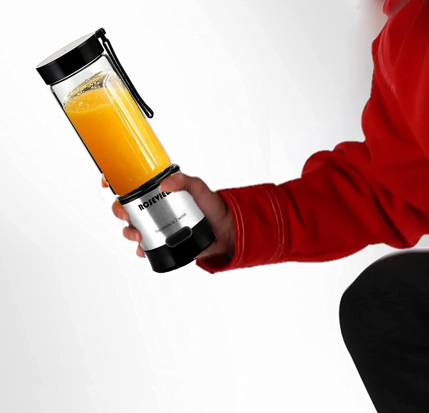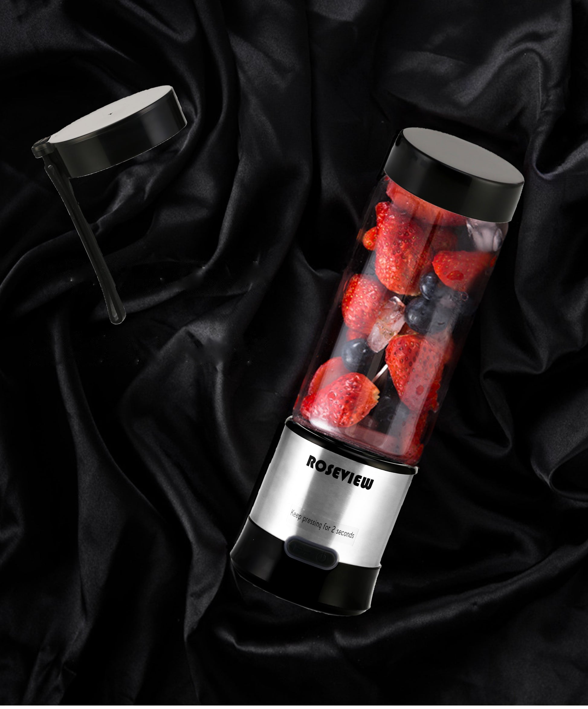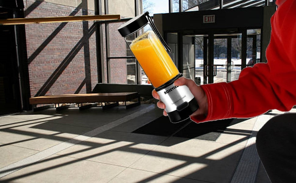 ROSEVIEW Blender Smoothie Portable for smoothies Glass bottle Mini USB rechargeable Handheld 2 Speed battery powered hand jet blend Shakes Cup mélangeur fruit juicer (CA, Stainless)